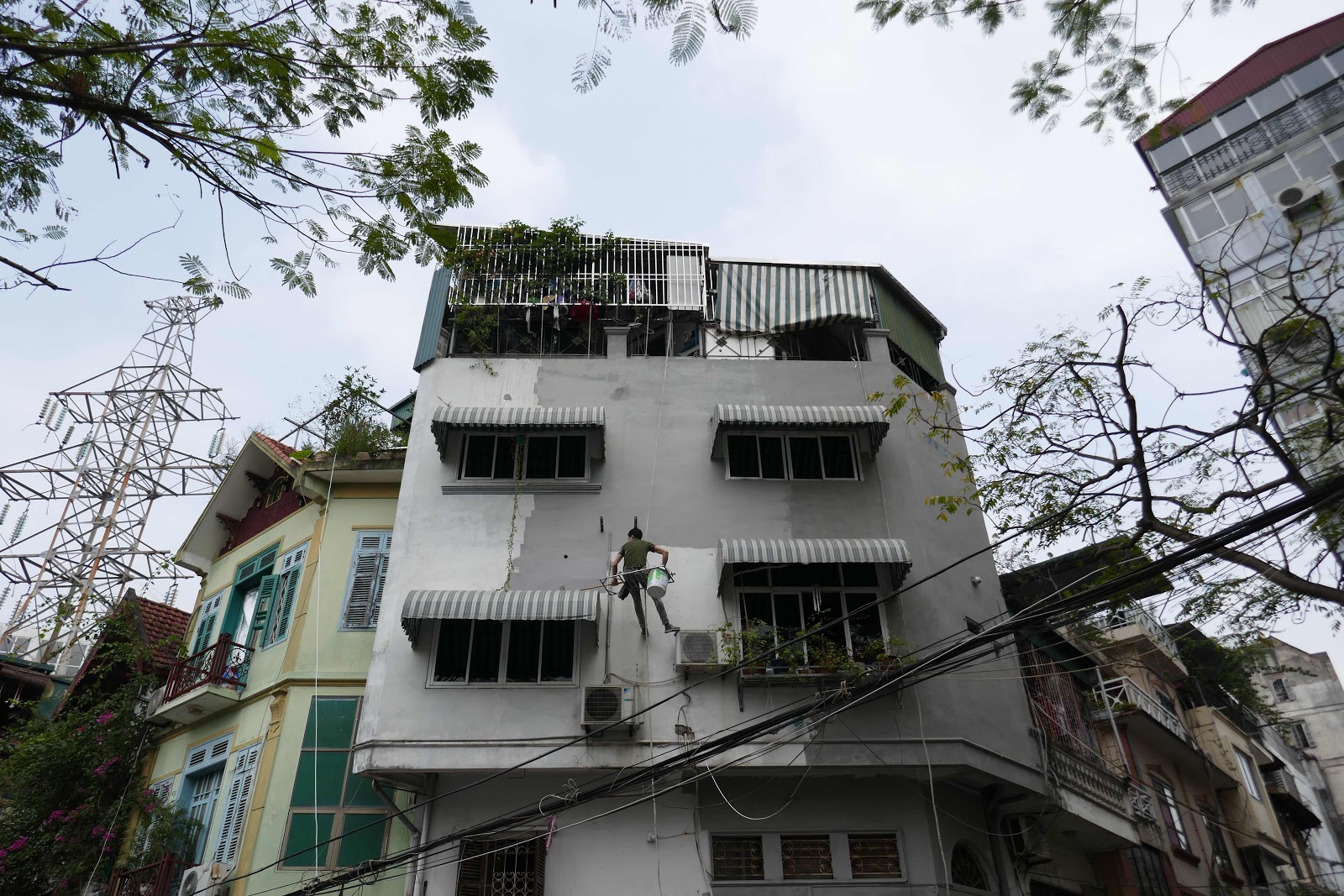 They don't believe in scaffolding for a paint job here.